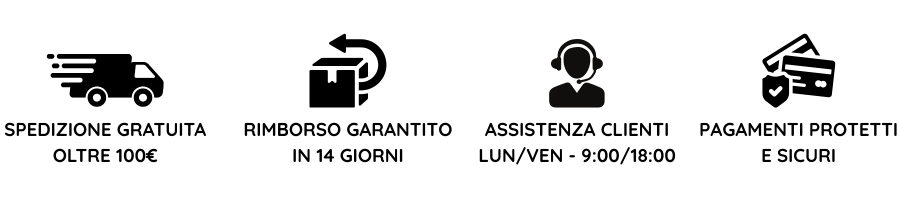 Estero: 15€ in tutta Europa (escluse isole) - Consegna con corriere DHL in 5/7 giorni lavorativi.<br>Gratis per ordini superiori o uguali a 200€